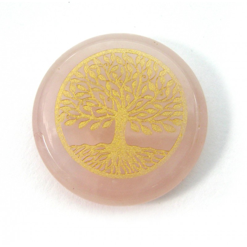 Scheibe Rosenquarz 3 cm mit Lebensbaum