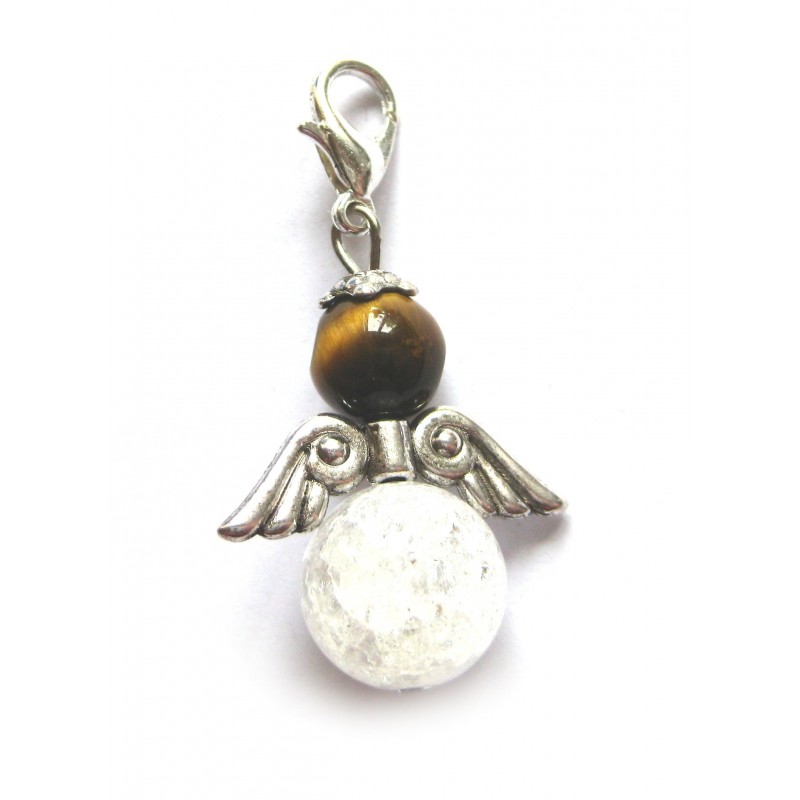 Charm Engel Sternzeichen Tigerauge Bergkristall (termisch behandelt) Jungfrau mit Karabiner