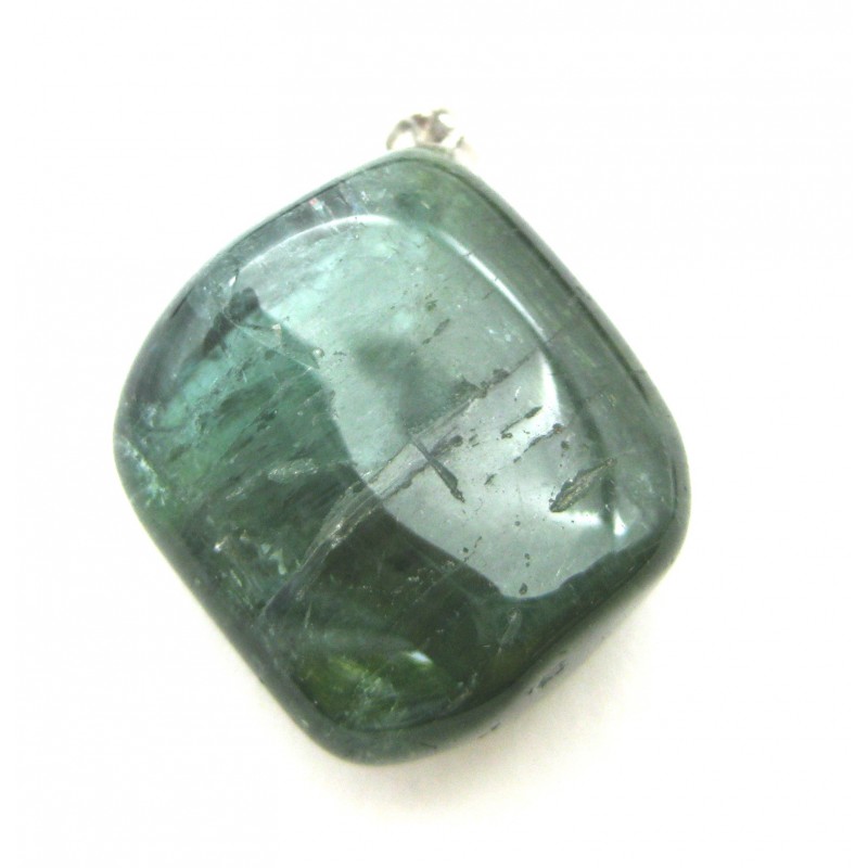 Trommelstein-Anhänger Turmalin grün A 925er Silber