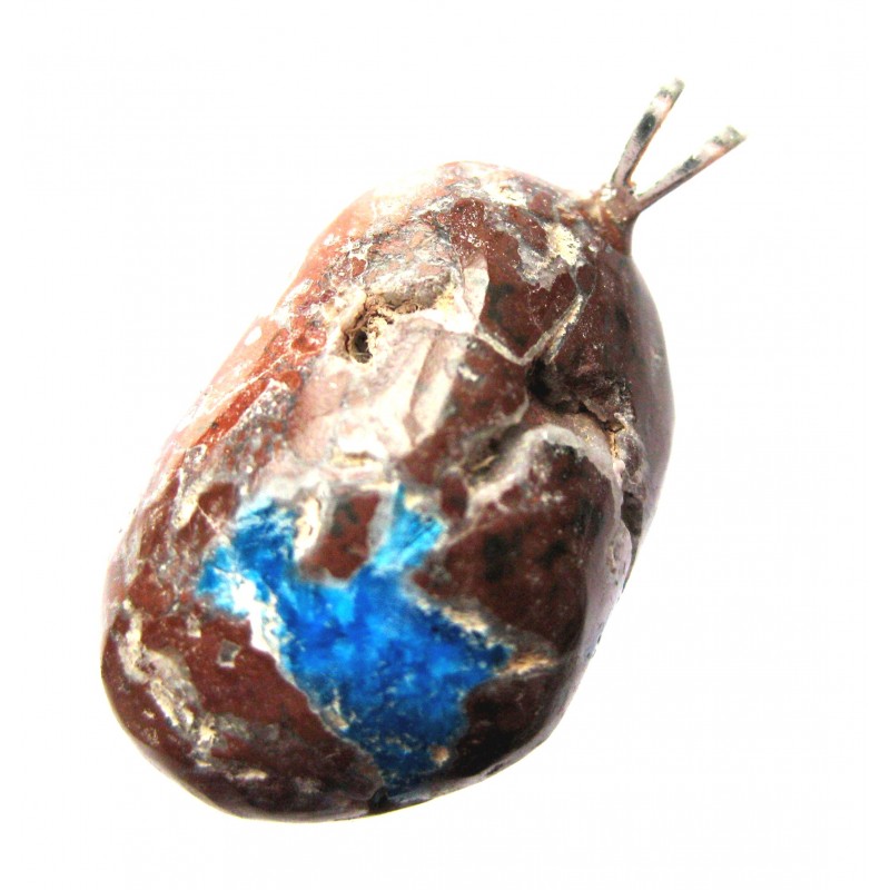 Trommelstein-Anhänger Cavansit in Matrix mit fester 925er Silber-Öse