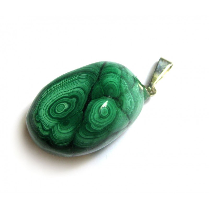 Trommelstein-Anhänger Malachit stabilisiert 2,5 - 3,5 cm 925er Silber