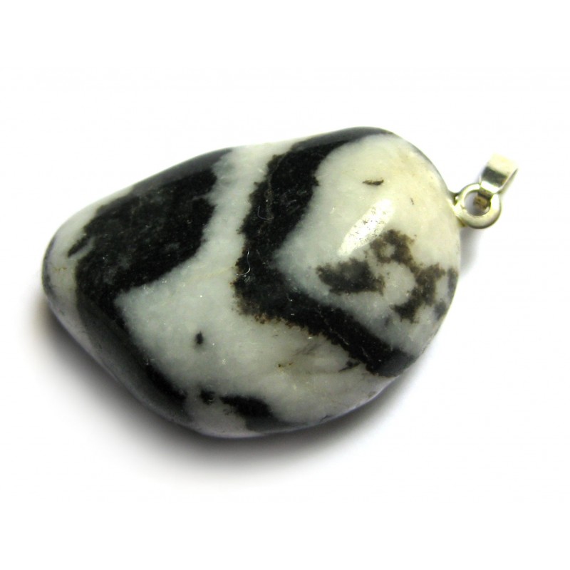 Trommelstein-Anhänger Marmor Zebra (Dolomit) 925er Silber