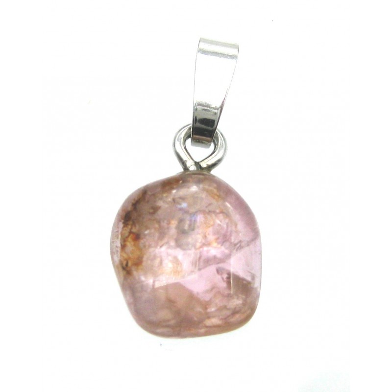 Trommelstein-Anhänger rosa Turmalin mit 925er Silberöse