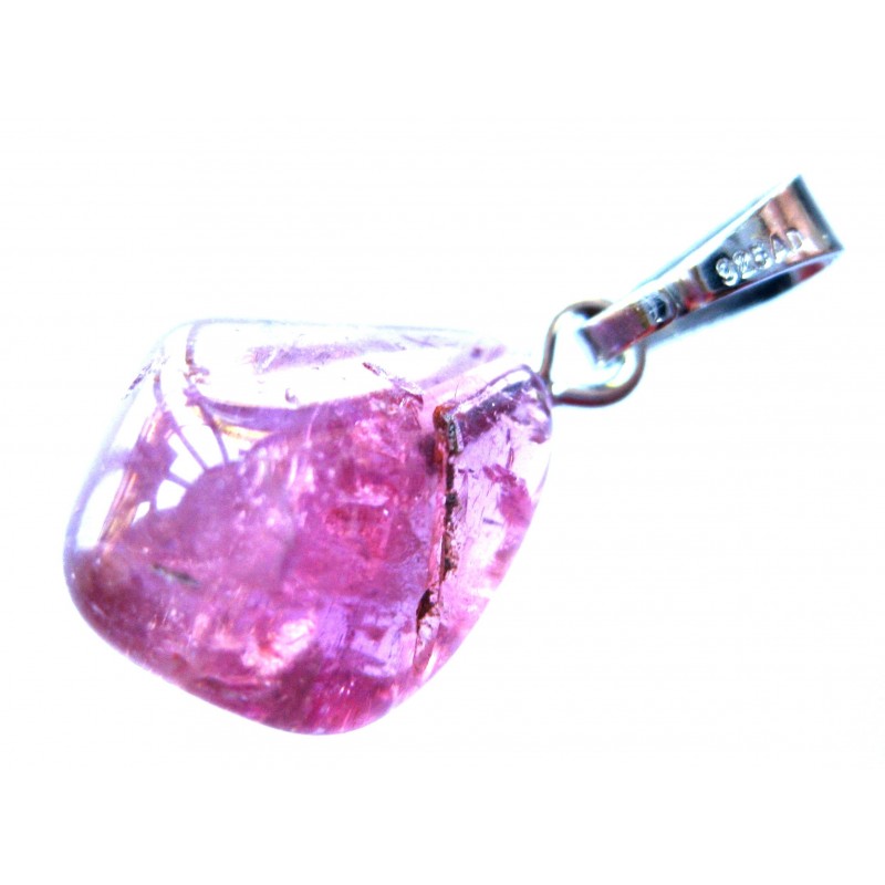 Trommelstein-Anhänger Turmalin rot Rubellit 0,5-1,5cm mit 925er Silberöse