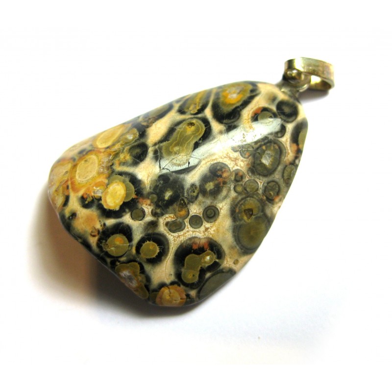 Trommelstein-Anhänger Rhyolith Leopardenstein 2-2,5 cm 925er Silberöse