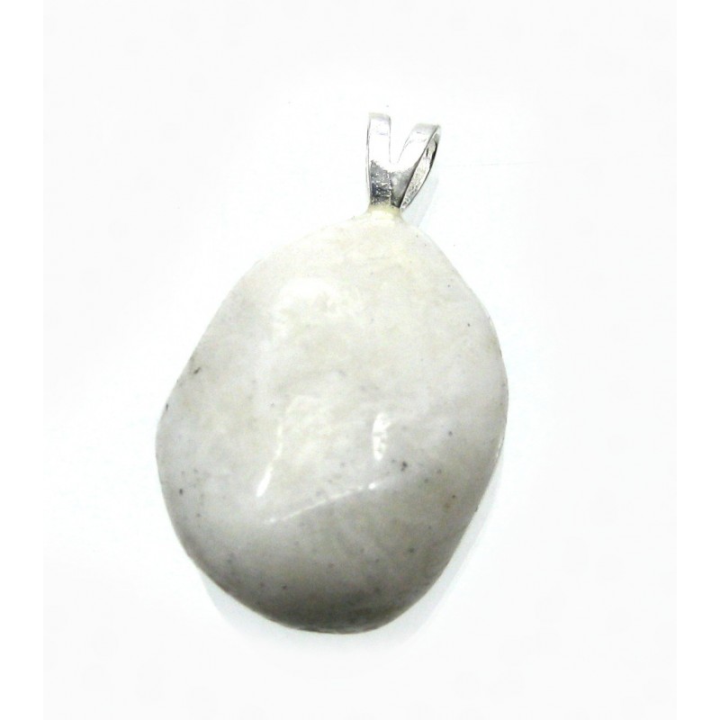 Trommelstein-Anhänger Baryt weiß mit fester 925er Silber-Öse