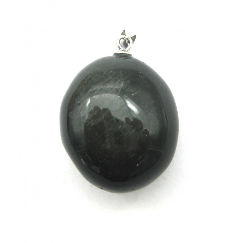 Trommelstein-Anhänger Obsidian gold 2 - 2,5 cm 925er Silber-Öse