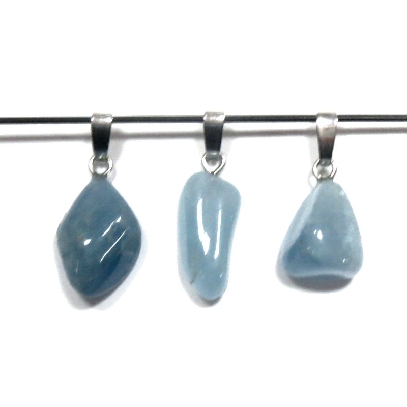Trommelstein-Anhänger Aquamarin A 1,5 - 2,0 cm 925er Silberöse