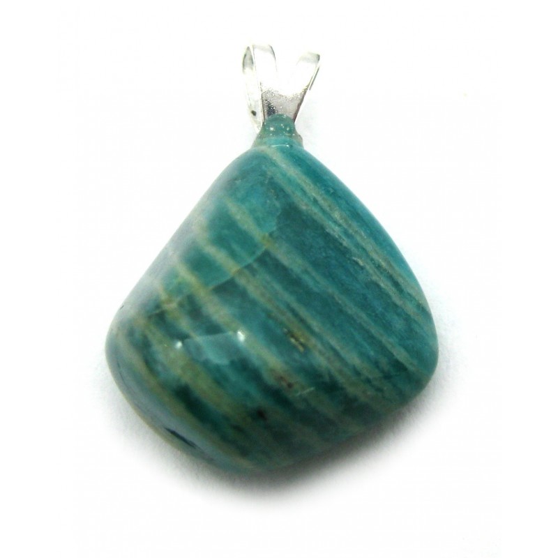 Trommelstein-Anhänger Amazonit dunkel 1,5 - 2 mit fester 925er Silber-Öse