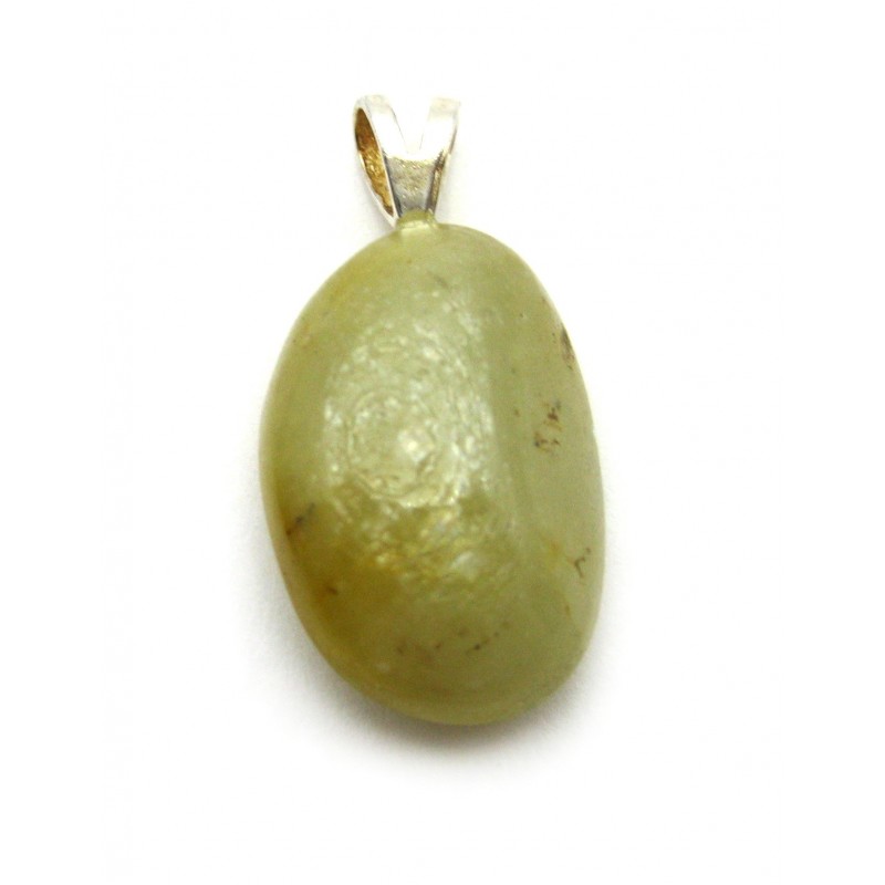 Trommelstein-Anhänger Safir gelb-grün 1,5 - 2 cm mit fester 925er Silber-Öse