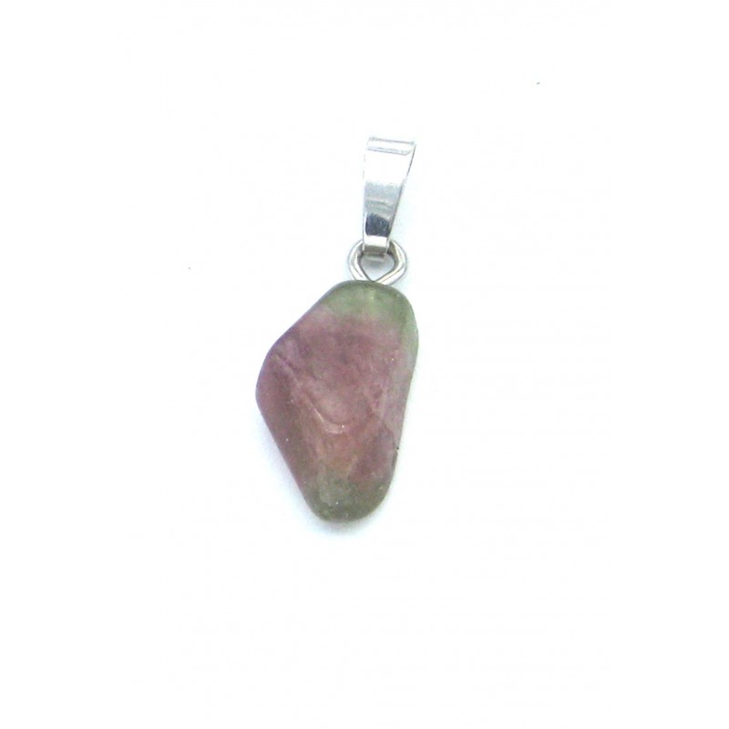 Trommelstein-Anhänger Turmalin Wassermelone hell 1-1,5 cm mit fester 925er Silber-Öse