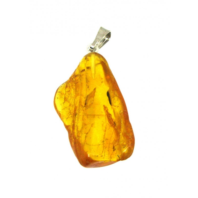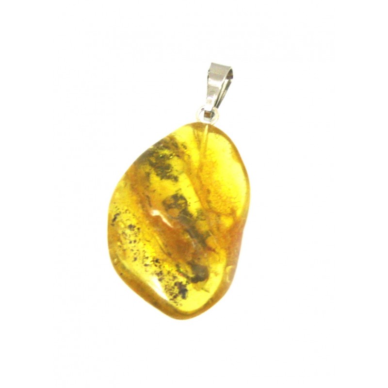 Trommelstein-Anhänger Bernstein 2-2,5 cm mit Insekteneinschluß mit Metall-Öse