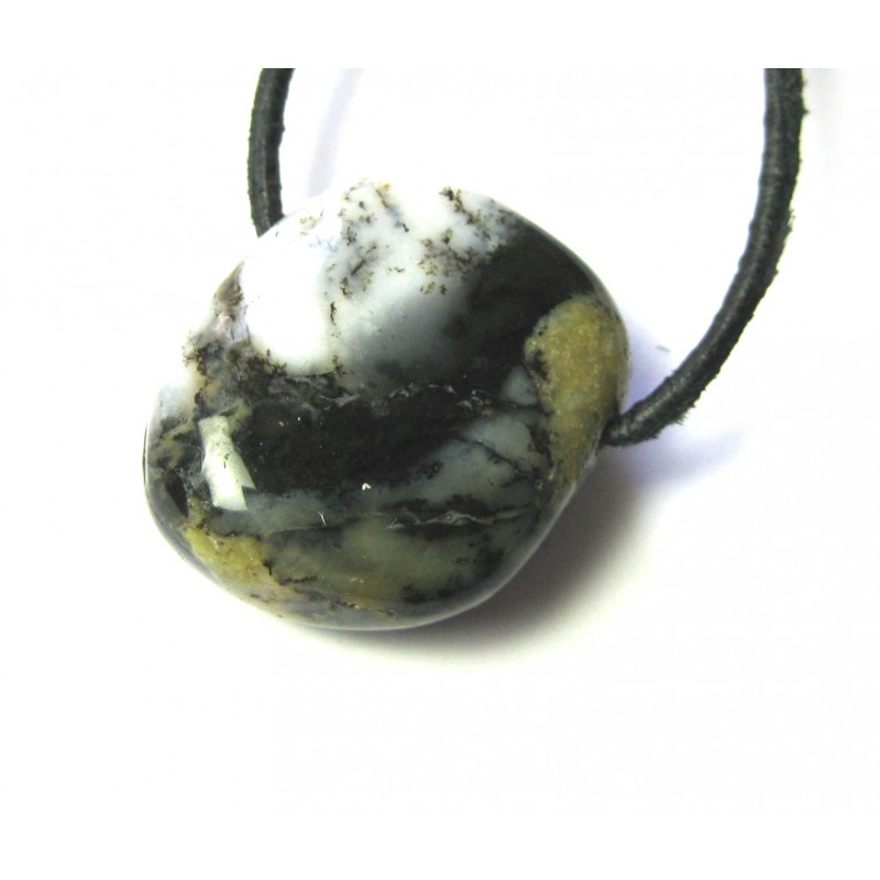 Trommelstein gebohrt Achat Dendriten Vergrößern