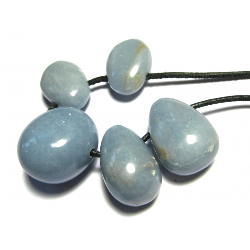 Trommelstein gebohrt Angelit (Anhydrit) VE 5 Stück