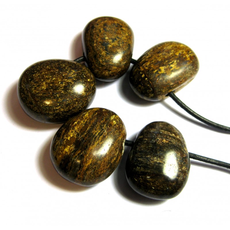Trommelstein gebohrt Bronzit A (Ferro-Enstatit) VE 5 Stück