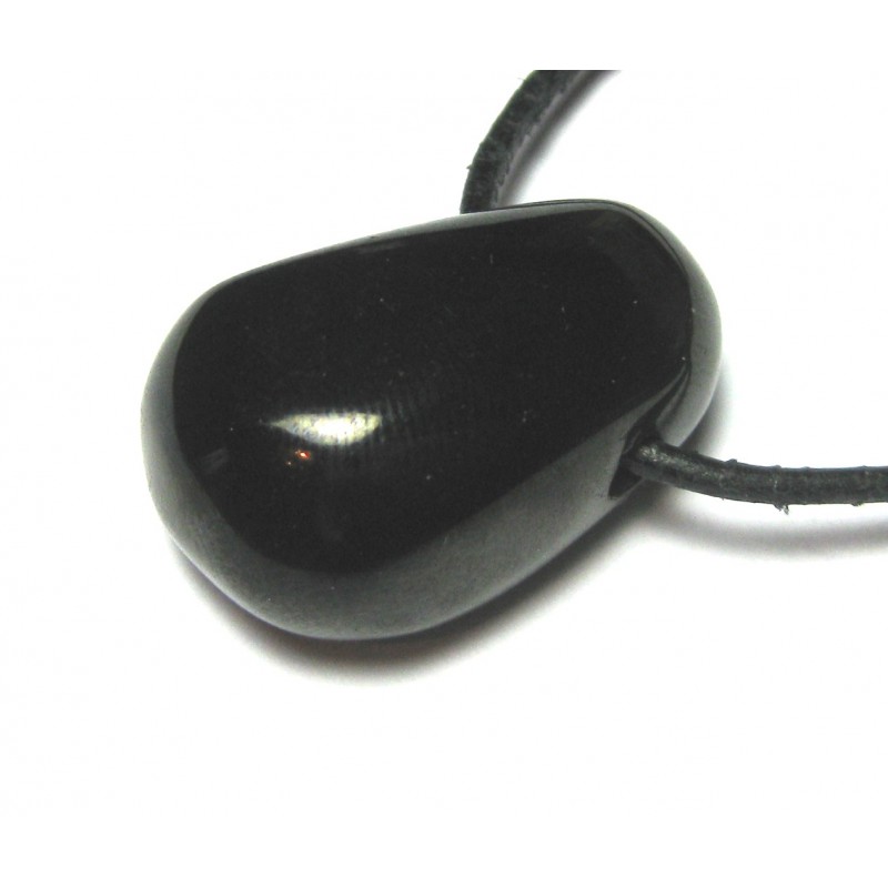Trommelstein gebohrt Gagat