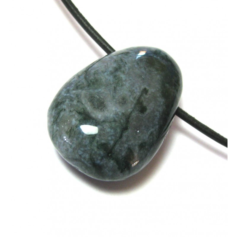 Trommelstein gebohrt Moosachat grün Vergrößern