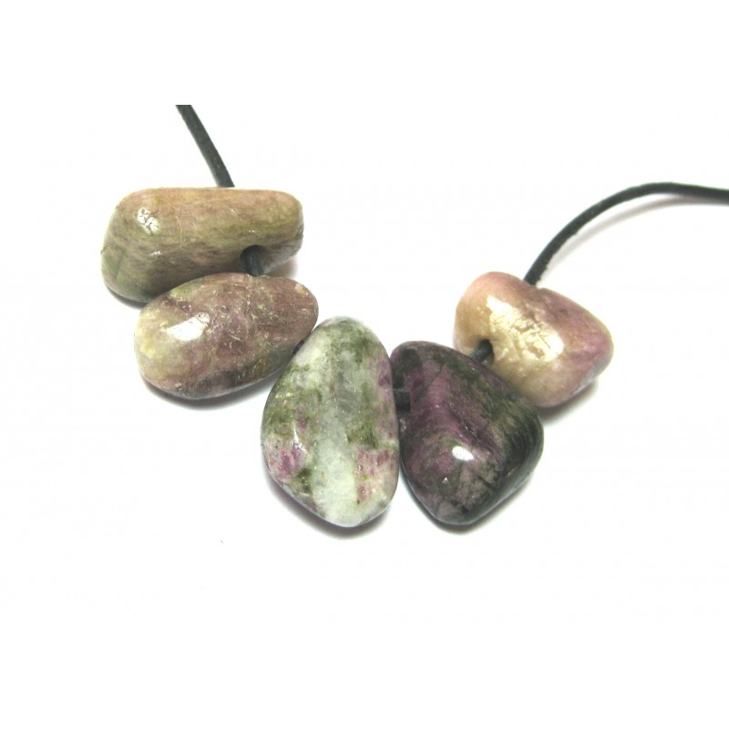 Trommelstein gebohrt Turmalin bunt in Matrix VE 5 Stück